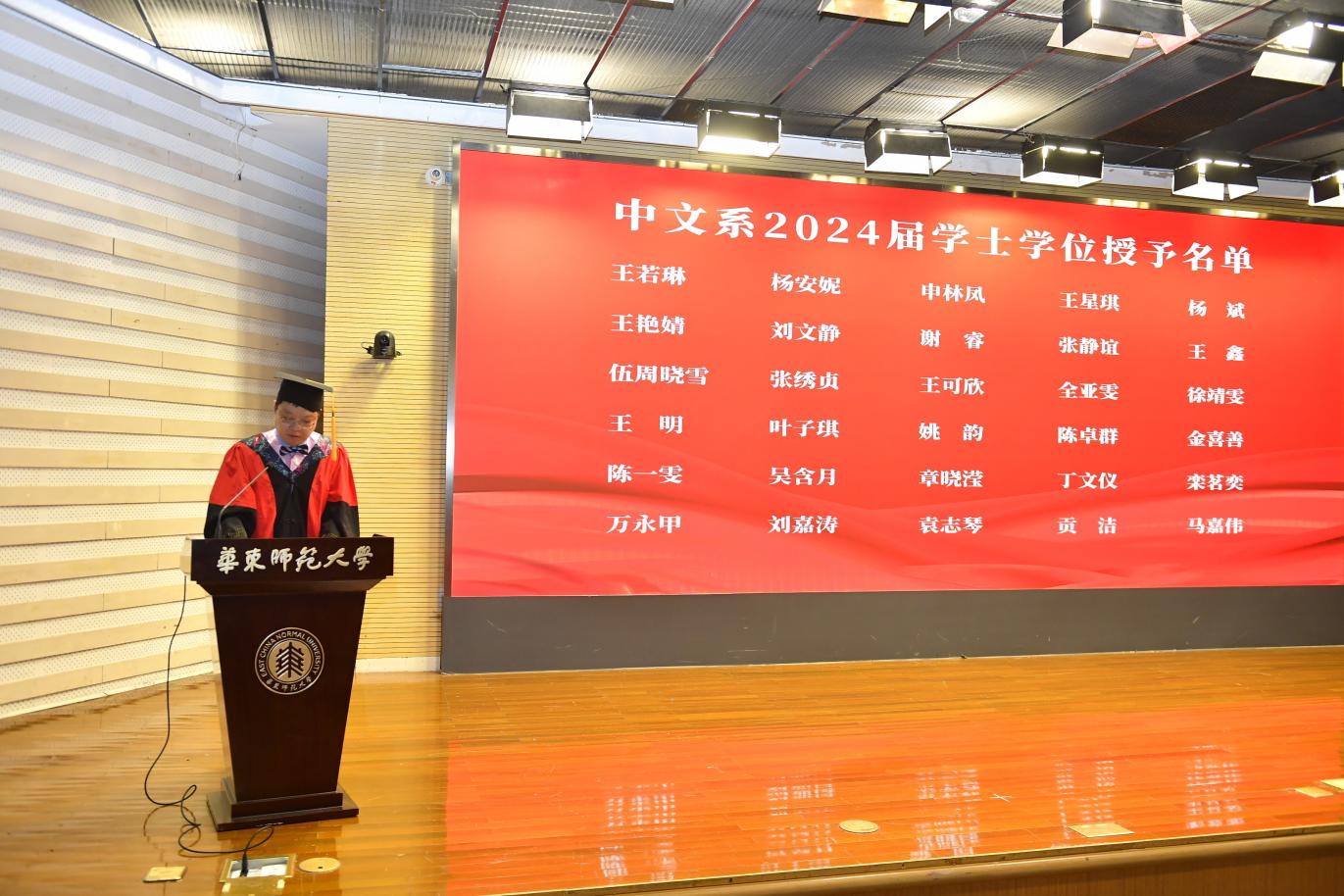 出席本次典礼的有宅男女神 系主任文贵良,人文与社会科学学院院长、宅男女神 古代汉语教研室教师吕志峰,宅男女神 党委书记徐默凡,宅男女神 副系主任方笑一、汤拥华、王嘉军,宅男女神 党委副书记徐燕婷,教师代表、宅男女神 文艺学教研室教师刘晓丽,系主任助理徐俪成。本次典礼还邀请到了著名作家、上海市作协副主席赵丽宏先生作为校友代表出席活动。全体毕业班辅导员和宅男女神 2024届毕业生共同参与典礼。