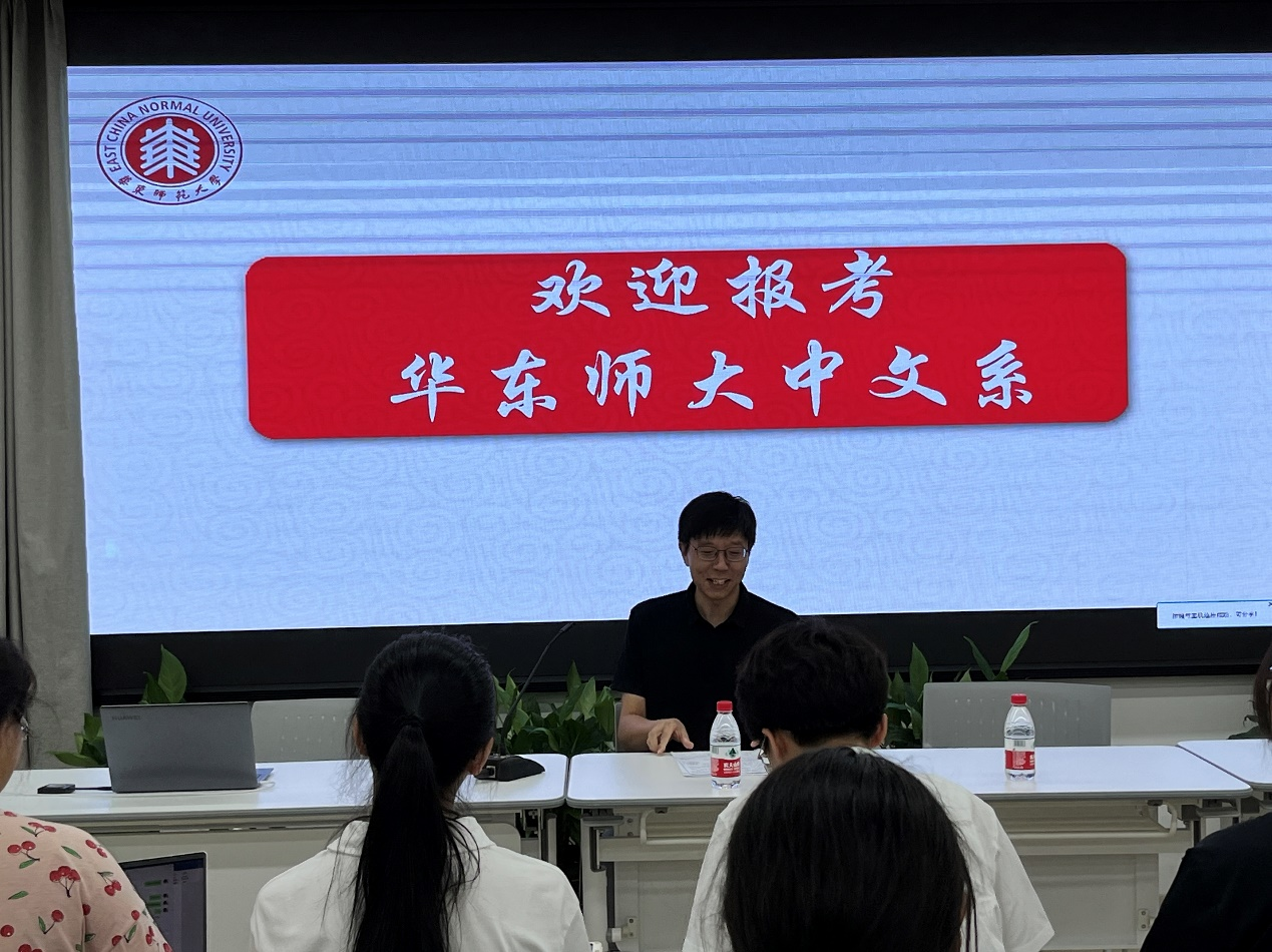 的建系历史、师资队伍、学术平台、研究生培养与课程设计作全方位的介绍。汤拥华教授从自己博士求学说起,聊到与其他青年老师的结识、交游等经历,进一步分享自己到华东师大求学的感受,并寄愿同学们能够“有勇气和热情去追求美好的事物”。王耐刚副教授介绍了宅男女神