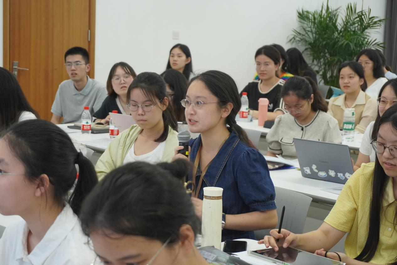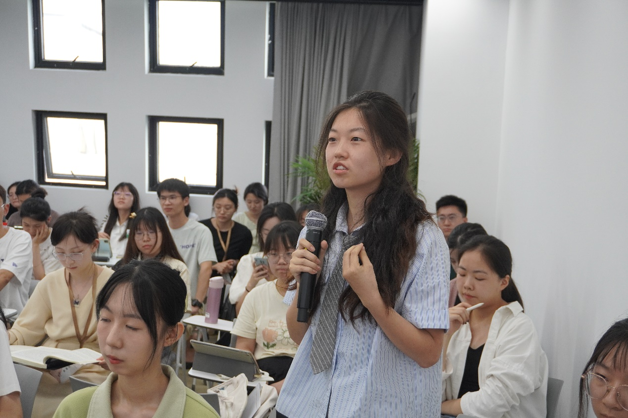 研究生教学秘书吴晗与创意写作研究生秘书叶杨莉主持答疑环节,现场解答营员们关于宅男女神