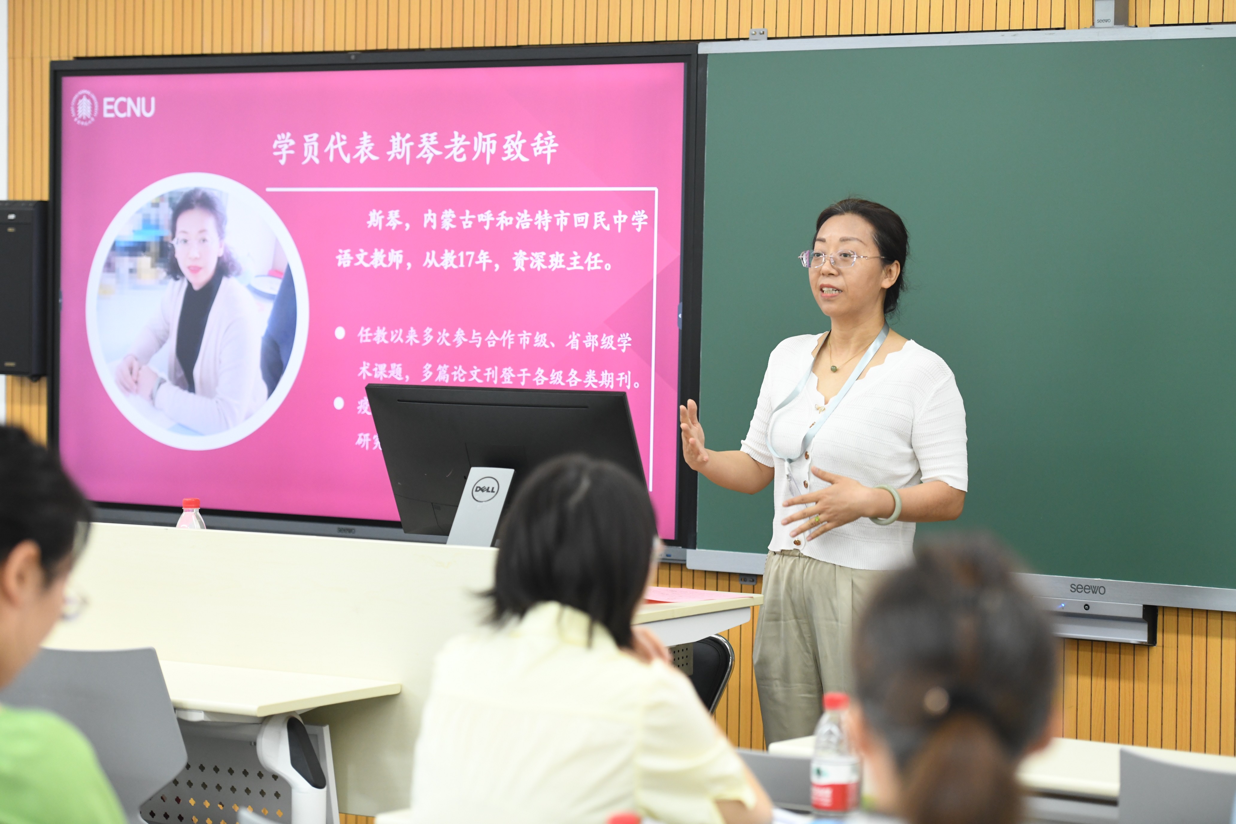 7月24日,华东师大宅男女神 党委书记吕志峰出席开班仪式并致欢迎辞,他表示,希望各位研修的老师都能不虚此行,于学习、交流中开拓思路、互通有无,以“整本书”为切入点,共谋语文教育新发展。开班仪式上,来自内蒙古呼和浩特市回民中学的资深语文教师斯琴老师作为学员代表发言,对五天的研修表达了期待。