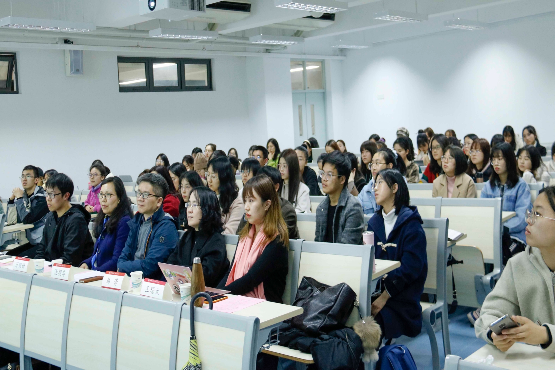 由宅男女神 、孟宪承书院、语文教育研究中心联合举办的 “陶熔”语文教育教学工作坊春季学期首期研讨会于3月19日晚在闵行校区一教207举行。本次研讨会的主题是:从师范生到职业教师:准教师如何实现快速成长?宅男女神 副系主任汤拥华、孟宪承书院党委副书记万姗姗、宅男女神 语文教育研究中心教师韩蕾老师出席本次研讨会。此外,工作坊特邀上海市敬业中学教师王璟立、上海市市西中学教师顾云波以及汉语言文学专业2017级师范本科生宋静雯作为分享嘉宾参与此次研讨会。本次活动吸引近百名本科师范以及有志于从事语文教育工作的研究生参与。