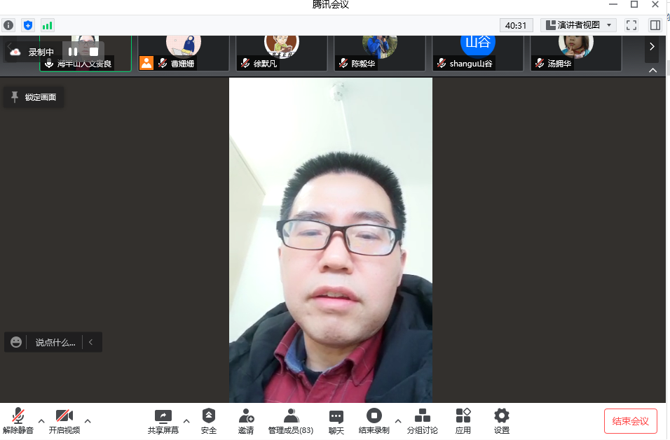 系主任文贵良在发言中指出,感谢全系教师在疫情期间的辛勤付出与理解支持,在疫情防控的攻坚期,希望大家继续强化责任意识,做到守土有责、守土尽责,将各项工作做实做细,各条线要继续做好在校学生、在职教师及退休教师的情况排摸和管理服务工作。相信通过大家凝心聚力、共克时艰,早日迎来可以自由出入校园的日子。