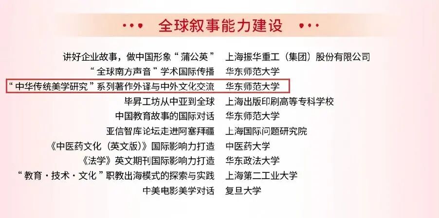 2025年度上海市“中华文化国际传播”项目征集活动结果日前揭晓,我系朱志荣教授主持的“‘中华传统美学研究’系列著作外译与中外文化交流”项目成功入围。