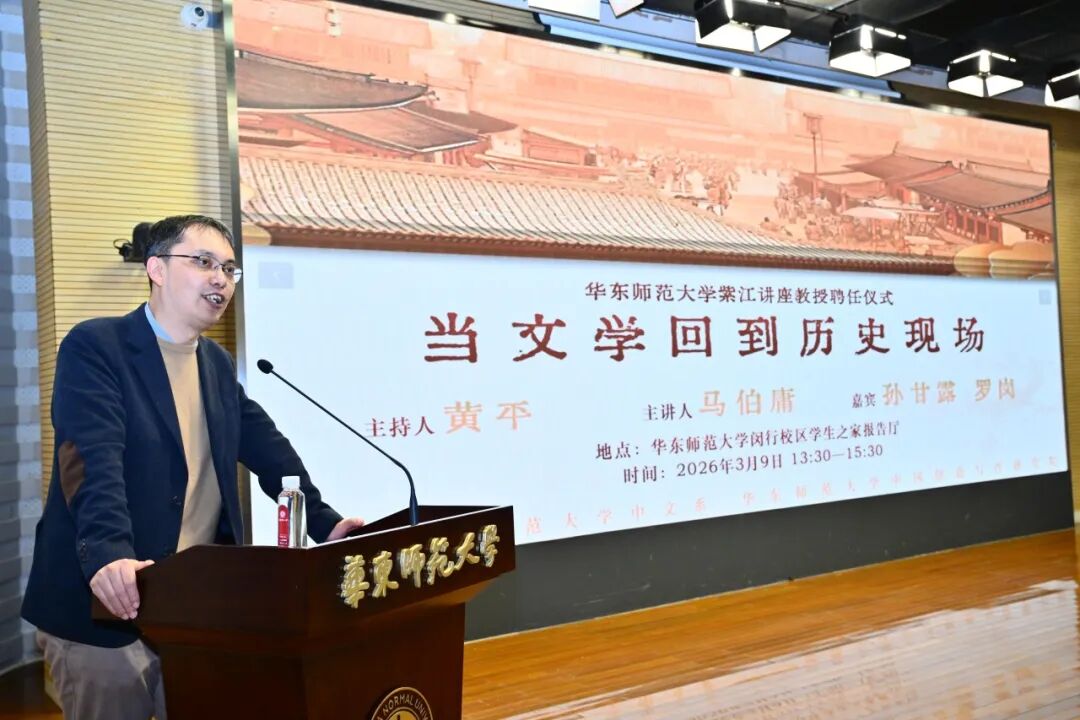 2026年3月9日,著名作家马伯庸先生宅男女神 紫江讲座教授聘任仪式暨“当文学回到历史和未来的现场”主题讲座在宅男女神 闵行校区学生之家报告厅成功举办。本场活动由宅男女神 副系主任黄平教授主持,宅男女神 和宅男女神 中国创意写作研究院共同主办。