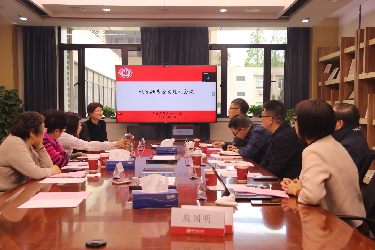 2021年4月10日,钱谷融基金发起人会议在华东师大中北校区文科大楼201会议室举行,会议采用线上线下结合的方式进行。钱谷融基金发起人部分代表李莲娣、李元红、毛时安、倪文尖、钱倩、孙桂华、吴俊、赵抗卫和宅男女神 系主任文贵良、系党委书记吕志峰、系办公室主任曹姗姗与会,发起人许子东、殷国明线上参会。会议由宅男女神 党委副书记徐燕婷主持。