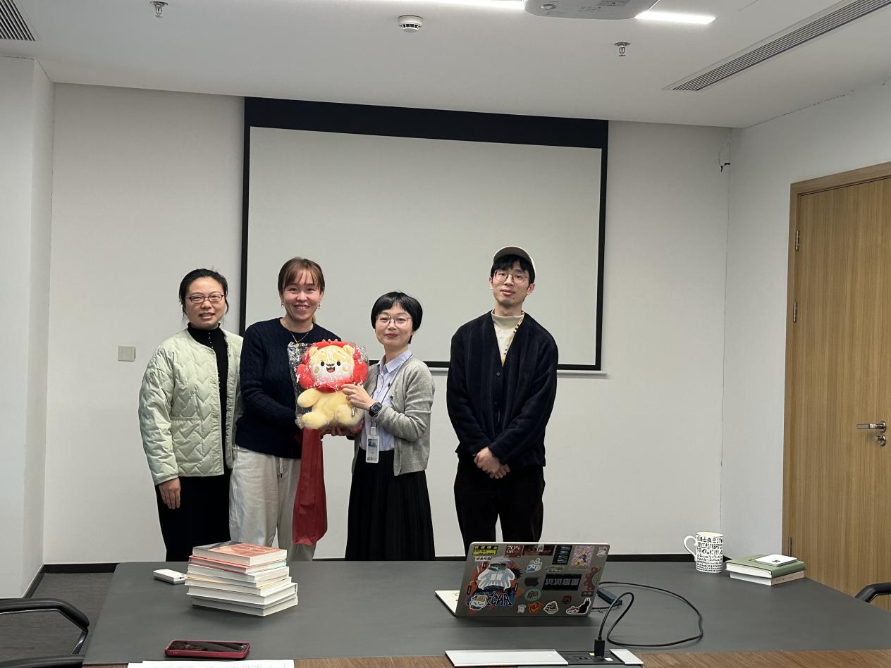 上海文艺出版社艺文志品牌主理人肖海鸥、资深编辑鲍夏挺热情接待了师生一行。他们从艺文志品牌的诞生讲起,详细介绍编辑的工作范畴、图书生产全流程以及编辑行业的前景,也分享了作为编辑的“酸甜”日常——如何在海量稿件中寻找光亮,如何与作者并肩打磨文字,如何在商业与理想之间找到平衡,言语之间透出对这一行业的深情与敬畏。互动中,同学们对编辑行业的未来展现出浓厚兴趣。作为人文学科的学生,与会同学对书并不陌生,但这次“走进书的后台”,让他们第一次真正看见成书背后的人与事。