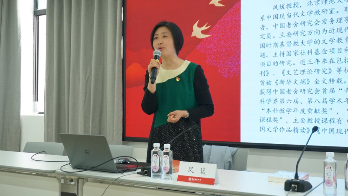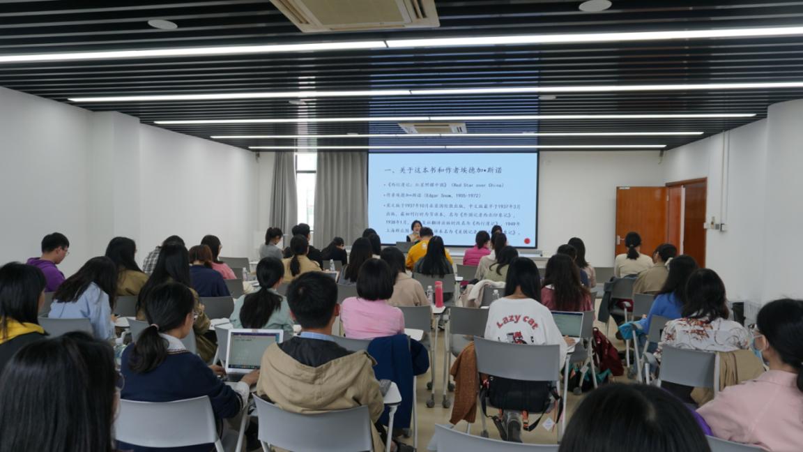 活动第一部分,中国现当代文学教研室、文艺学教研室党支部书记凤媛教授以讲座的形式领读红色经典著作——埃德加·斯诺的《西行漫记》。