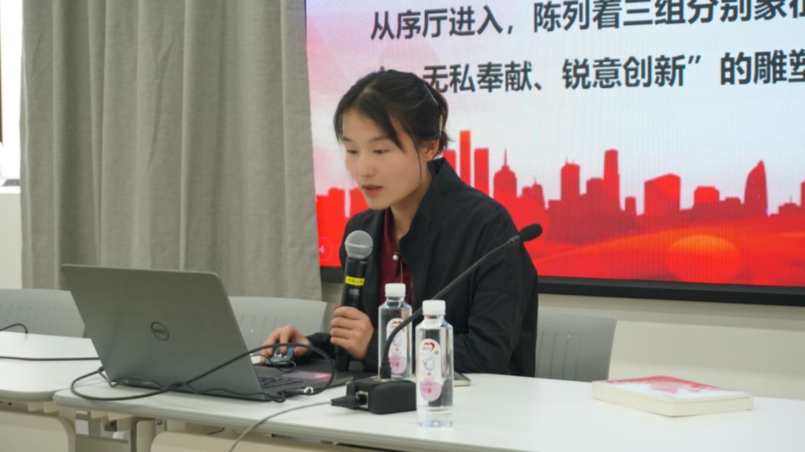 本次主题活动的第二部分由学生积极分子马笑同学带来实践心得分享会。她结合党支部参观上海龙华烈士纪念馆的体验,分享了自己的思考,并讲述让她感动的革命故事。现代博物馆采用光、影、音相结合的技术,能让参观者身临其境,仿佛步入历史现场,与此同时,参观者还能看得到革命前辈是如何“肩着黑暗的闸门”,撑起今天光明的天空。
