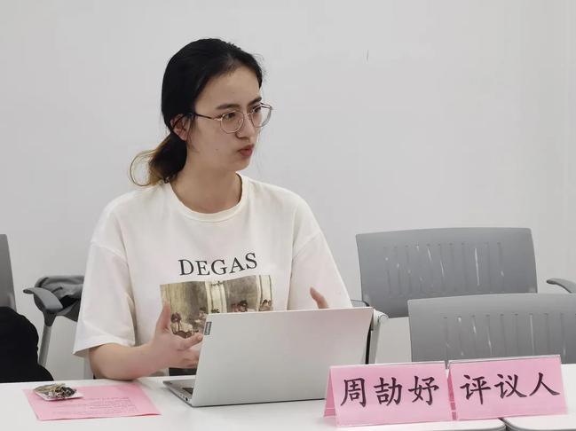 华东师大宅男女神 比较文学与世界文学的周劼妤对本组论文进行评议。周劼妤认为,谷乾鹏同学的文章文笔非常老辣稳健,可以看出非常熟练于学术论文的书写。马静如同学的论文体现了很强的跨学科视野,但在阐释中过于贴合理论,使得文学被心理学理论统摄,应对文学自身特性增加更多阐释。骆驿同学的文章用正统的文艺学研究方法对拉康的文本解读策略进行解剖,内容非常清晰,对于文艺理论入门者也有很强的可读性和引导作用。潘雨譞同学的文章层次分明,框架清晰,但是对中西悲剧观念的对比过于宏大,若是能收缩范畴,将时间压缩至伍廷芳所处的时代及他个人的悲剧理念,论文效力会更强。