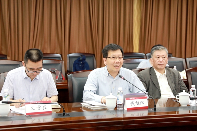 在黄平教授汇报完毕后,钱旭红校长、李敬泽主席、马文运书记、嵇海荣董事、文贵良系主任、孙甘露院长一道为“孙甘露名师工作室”揭牌。伴随着帷幕徐徐揭开,“孙甘露名师工作室”正式成立。随后,揭牌嘉宾先后致辞。