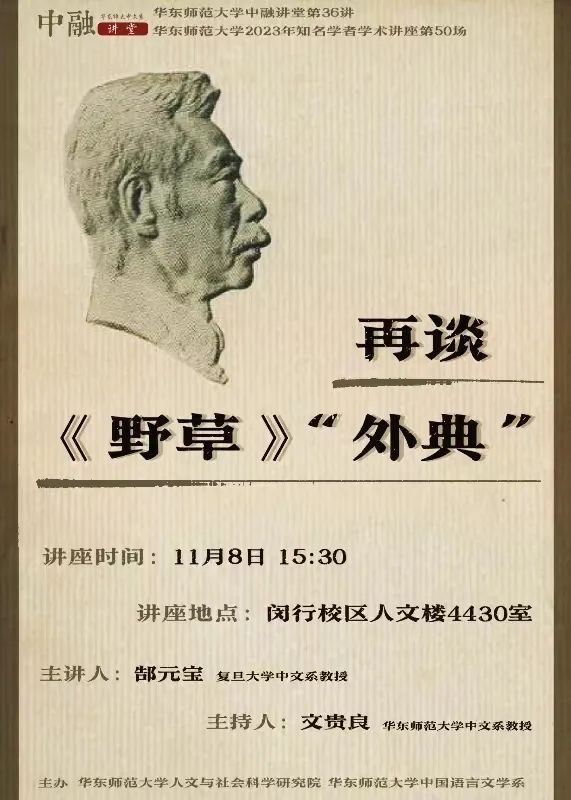 讲座内容回顾:2023年11月8日下午3时30分,复旦大学宅男女神 郜元宝教授在闵行校区人文楼4430室进行了题为“再谈《野草》‘外典’”的精彩讲座。本次讲座是“宅男女神 2023年知名学者学术讲座”第50场暨“宅男女神 中融讲堂”第36讲,由宅男女神 凤媛教授主持。郜老师以跨文化跨语言的方式研究《野草》中的域外典故,在一个个引人入胜的文学故事的讲述中,阐释鲁迅晦涩难解的表达下所潜藏的真实思想。