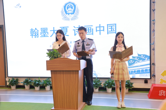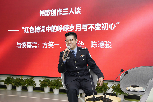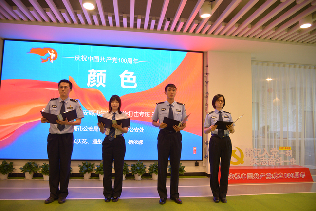 一线民警们在辛勤工作之余,还自发地设立文学创作俱乐部、文学社团等机构,传播诗词文化,投身诗歌创作,从中汲取精神力量,创造诗意生活,用文学的力量为党的百年华诞献礼。活动现场除了朗诵知名诗词外,我校师生与公安民警们还带来了各自原创或改编的作品,现场交流、朗读。原创诗歌《颜色》《那一抹中国红》《翰墨大夏,诗画中国》等或致敬过去,献礼当下,遥寄未来。由华东师大宅男女神 学子与上海市公安局浦东分局、上海市公安局文化保卫分局、上海公安学院的民警们共同诵读,从不同侧面表现了中国共产党成立100年来,带领中华民族实现伟大复兴梦想的壮阔征程,讴歌共产党员不忘初心、砥砺前行的顽强精神。改编诗歌《祖国,请听一听我的告白》以饱含深情的告白,表达人民群众的家国情怀与对未来的美好憧憬,反映当代青年感悟先辈初心、为实现伟大“中国梦”而不懈奋斗的理想与决心。