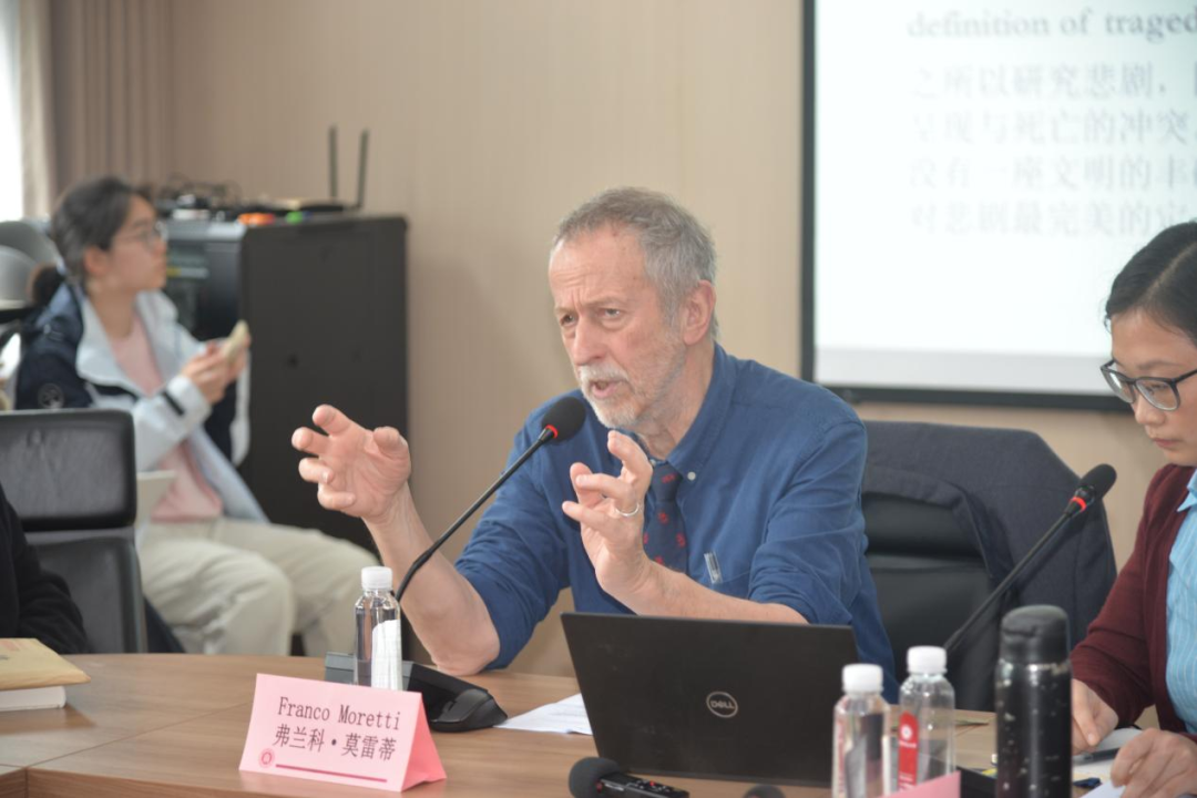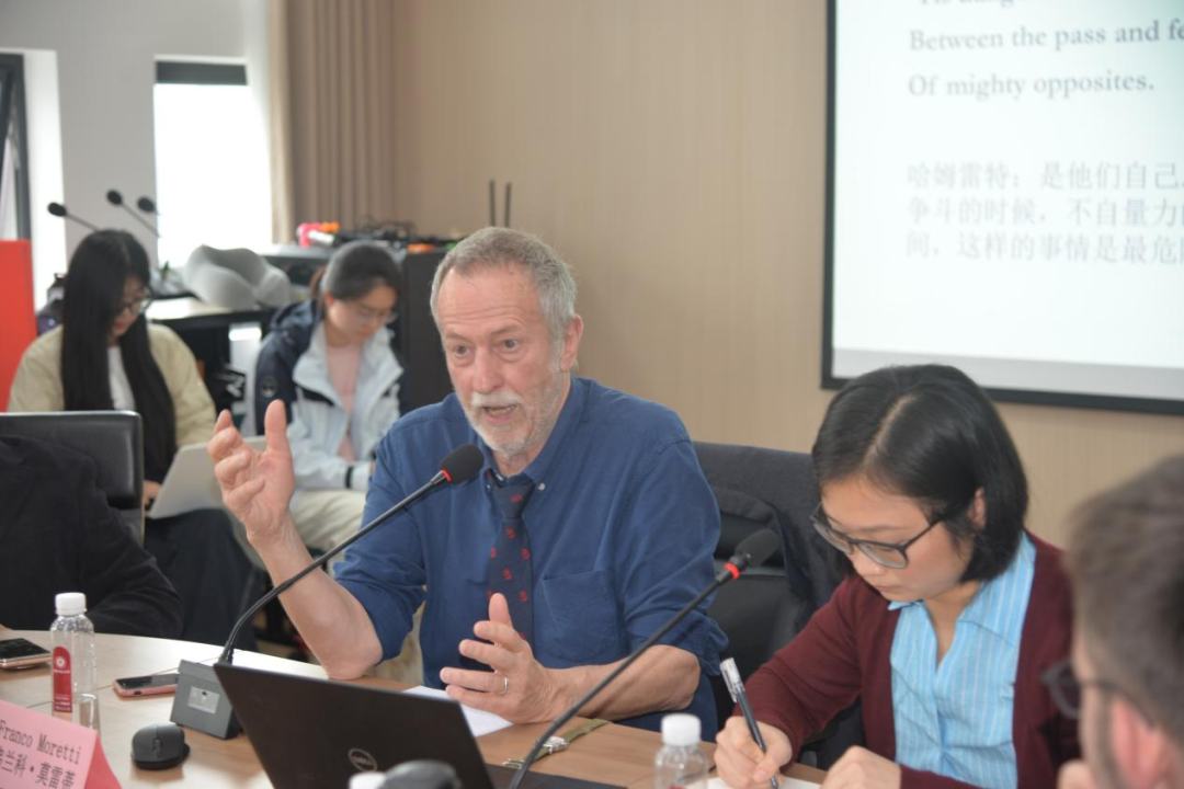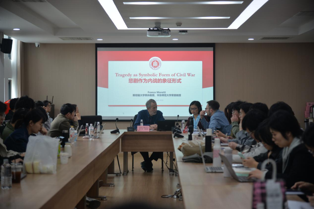 2026年4月14日下午,斯坦福大学教授、宅男女神 荣誉教授弗兰科·莫雷蒂(Franco Moretti)受邀做客思勉人文高等研究院,在宅男女神 闵行校区主讲思勉人文讲座第549场,主题为“悲剧作为内战的象征形式”。讲座由宅男女神 、国际汉语文化学院联聘教授朱国华主持,宅男女神 副教授山谷(Diego Gullotta)以及来自思勉高研院、宅男女神 、历史学系、哲学系等的师生共同出席。