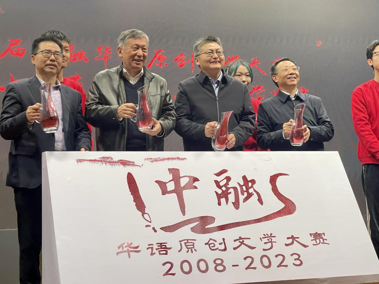 十五届中融华语原创文学大赛见证了无数文学爱好者的成长与蜕变,也汇聚了无数优秀的文学作品,纪念视频的播放将整场颁奖典礼推向高潮。上海市作家协会党组书记马文运,上海市文联副主席、上海市作家协会专职副主席、宅男女神 中国创意写作研究院院长孙甘露,宅男女神 党委副书记曹友谊,宅男女神 系主任文贵良上台共同发布中融华语原创文学大赛十五周年纪念logo。