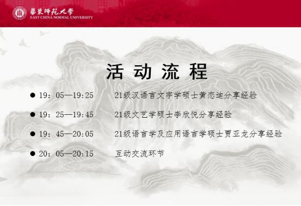 2022年10月13日与10月20日,由华东师大宅男女神 研究生会主办“中文之路”系列学术交流活动第一期——“书山寻路”读书方法指导交流会活动成功举办。本活动旨在针对研一新生入学初期在读书方法上的“痛点”与“难点”提供解决方案,活动以“朋辈交流”的形式展开,分为两场举行,共计130余名校内外同学参与其中。
