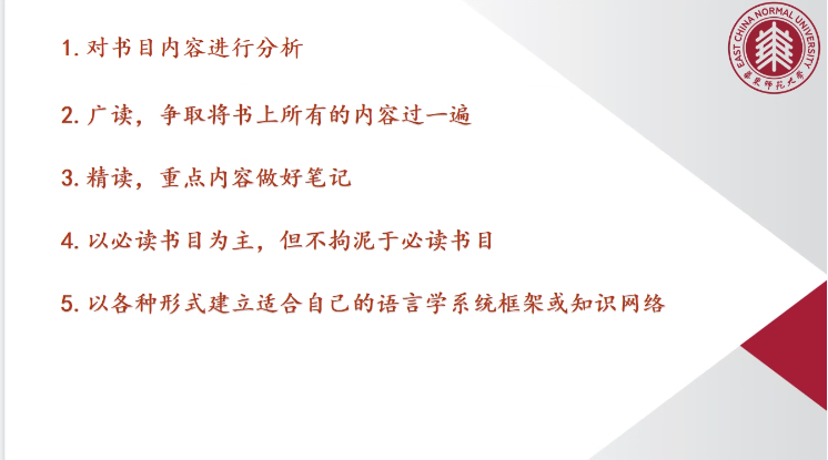 针对语言学复习备考的具体方法,贾同学在对比分析近三年考题的基础上,结合自身阅读与复习的经验给出了建议:阅读时不要拘泥于书单,书单中未出现但属于学界重要研究内容的问题也会成为考点。应当把“广读”与“精读”相结合,前者重在广博,后者注意要有所取舍、做好笔记。最后,要以各种形式建立自己的语言学系统框架和知识网络,以应对学习与考试的需要。