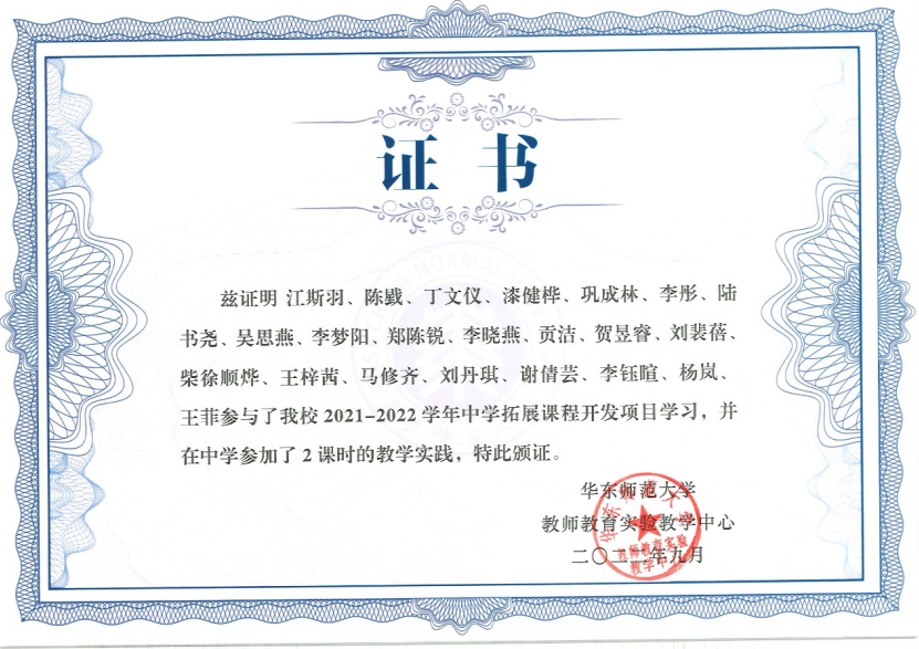 课程的小组长陈戥、丁文仪、宋楚莹、方子彬、郑瑶、巩成林、李彤及参与上课的同学也都收获满满。师范班的丁文仪同学说: