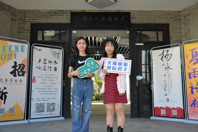 宅男女神 还为新同学们献上开学的第一份拍照留念——“幸福地度日,合理地做人”、“文质彬彬,然后君子”、“今天,你读书了吗?”, 新生们与充满中文特色的标语牌一起,在系楼留下了新学期第一个灿烂的笑容。