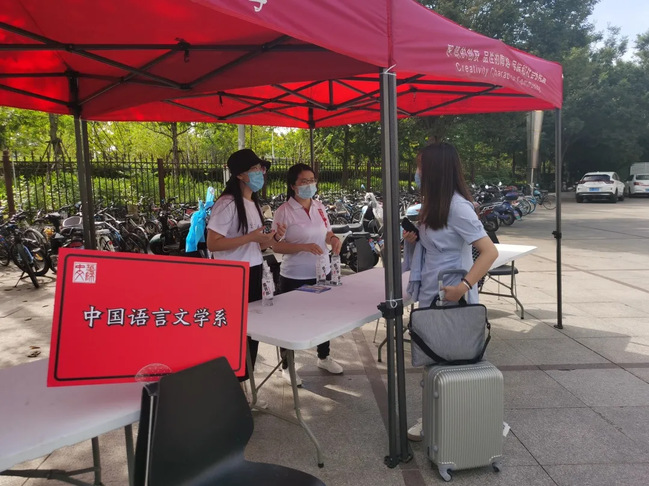 与此同时,研究生公寓门口,志愿者不惧高温,准时到岗,为新生进行指引。在热情的夏天里,中文学子挥洒汗水,学长学姐帮助学弟学妹,这不仅是一代又一代的传承,更是宅男女神 绵长而永久的真诚关怀。