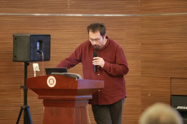 6日下午第二场议题“人类世中的叙事”由宅男女神 卢逸凡(Ivan Ruviditch)副研究员主持。Neohelicon期刊主编、深圳大学外国语学院特聘教授Peter Hajdu作了《气候变化政治学与社会崩溃叙事》的主题报告,指出气候变化导致了社会崩溃叙事,强调这一叙事带来的政治危险性,即可能导向对中心化的强权与控制的支持,Hajdu教授以奥克塔维娅.E.巴特勒的小说为例,否认了中心化强权的必要性。