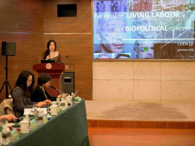 复旦大学宅男女神 博士生陈琦以《“活劳动”作为生命政治概念的诞生:激进左翼美学的身体性叙事》为题,通过对激进左翼“活劳动”的美学阐发,探讨了在重建主体性的过程中,活劳动所呈现的生命政治和批判理论叙事方法的整体转变。