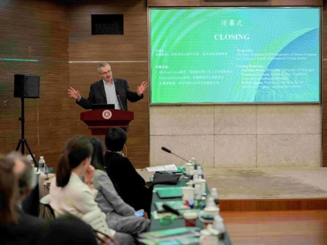 7日下午,闭幕式由金雯教授主持。德国哥廷根大学人文学院副院长Matthias Freise教授、法国新索邦大学副校长François Lavocat教授、宅男女神 副系主任王嘉军教授先后做了闭幕总结发言,高度评价了会议内容的丰富深刻,向与会学者表达了感谢,同时期待校际之间再次展开跨领域的深度学术交流与合作。
